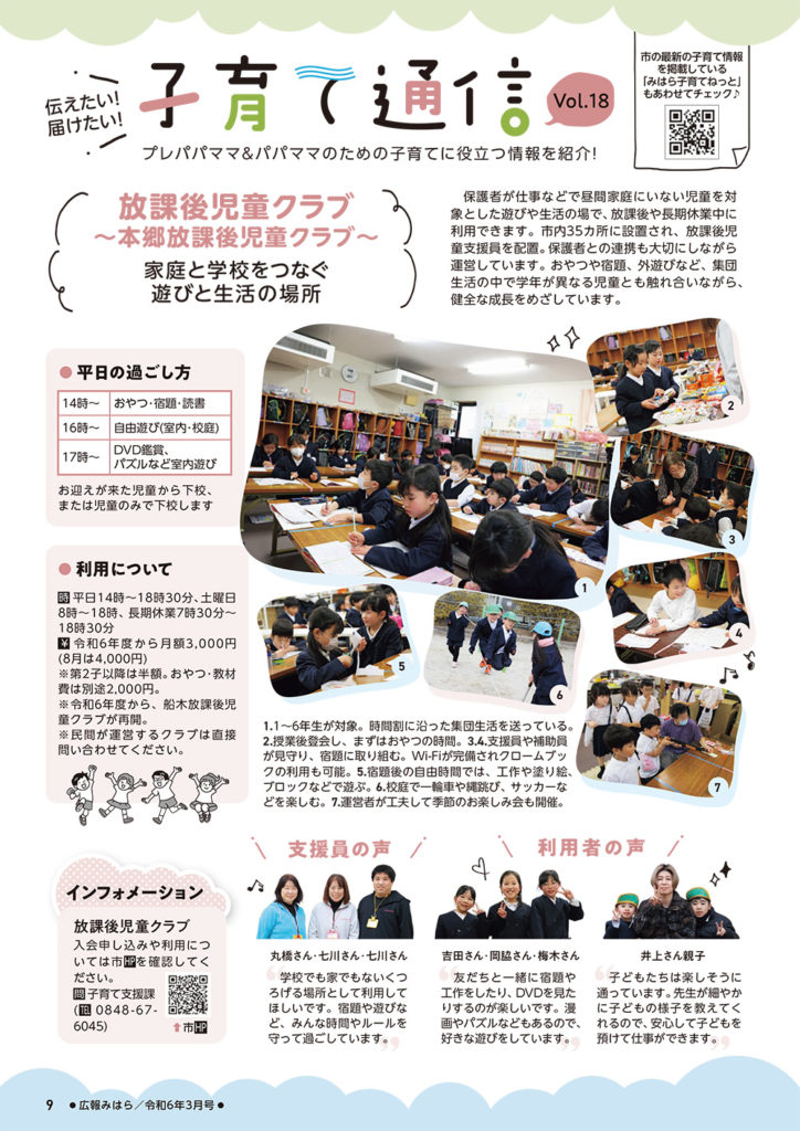 広報みはら令和6年3月号(第228号)の、「子育て通信」に本郷放課後児童クラブが紹介されました。